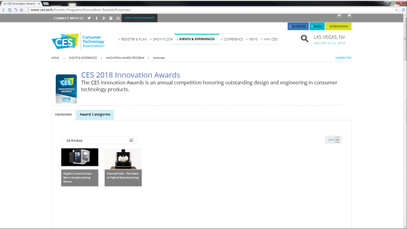 華拓科技自主原創(chuàng)--數(shù)字曲面微滴噴射設(shè)備榮獲2018CES創(chuàng)新獎