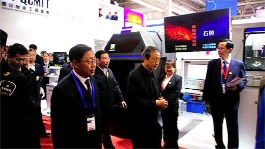 4月19日,第十五屆中國國際機床展覽會舉行的第三天,迎來了一位重量級的參觀者,中央政治局委員、國務(wù)院副總理馬凱在工信部部長苗圩等領(lǐng)導(dǎo)陪同下蒞臨華拓科技所在的E3館視察并指導(dǎo)工作。(華拓科技工作人員接受《制造技術(shù)與機床》雜志社記者采訪) (華拓科技展臺前參觀咨詢者絡(luò)繹不絕) (陜西省機械工程學(xué)會常務(wù)副理事長任國梁