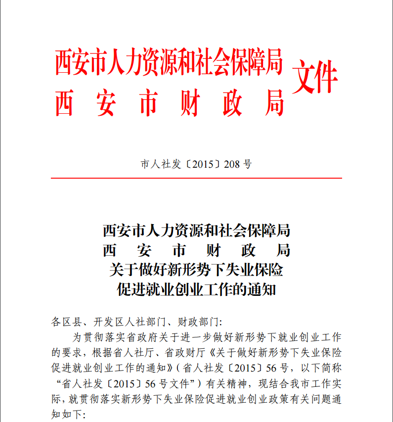 西安市人力資源和社會(huì)保障局 西安市財(cái)政局 關(guān)于做好新形勢(shì)下失業(yè)保險(xiǎn)促進(jìn)就業(yè)創(chuàng)業(yè)工作的通知